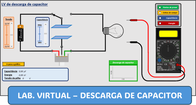 Este laboratório foi desenvolvido em um dashboard feito no Excel, onde explora a descarga de capacitor de forma didática.