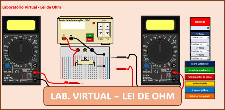 Este laboratório foi desenvolvido em um dashboard feito no Excel, onde explora a lei de Ohm de forma didática.